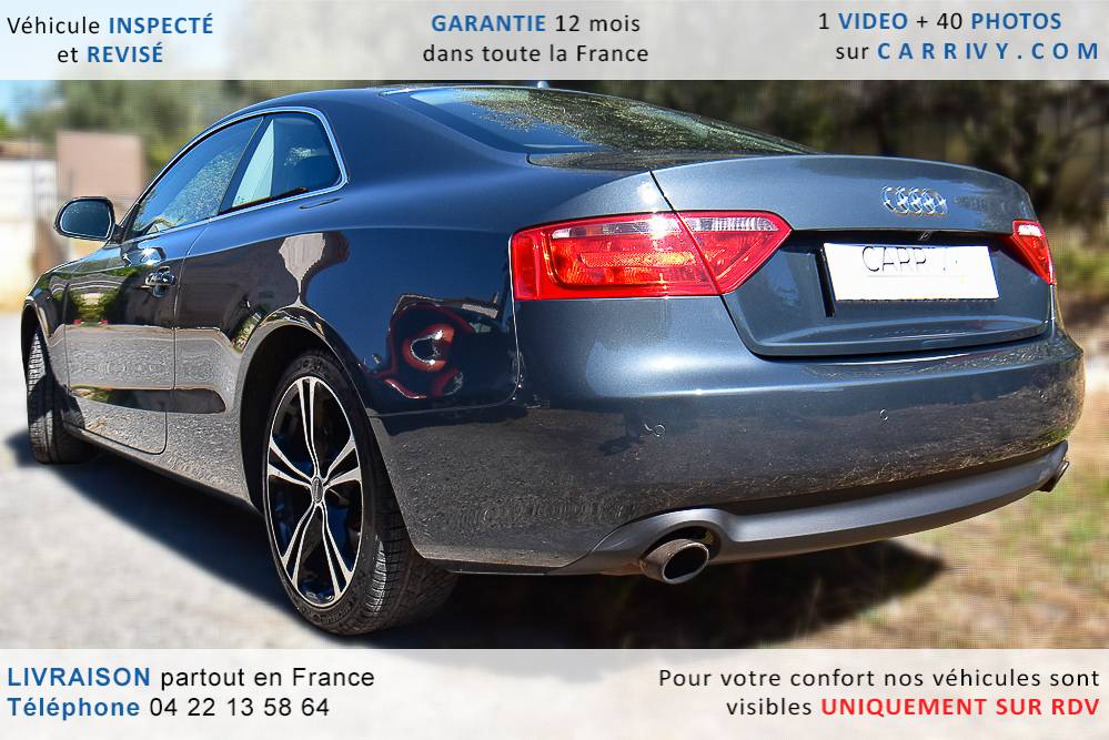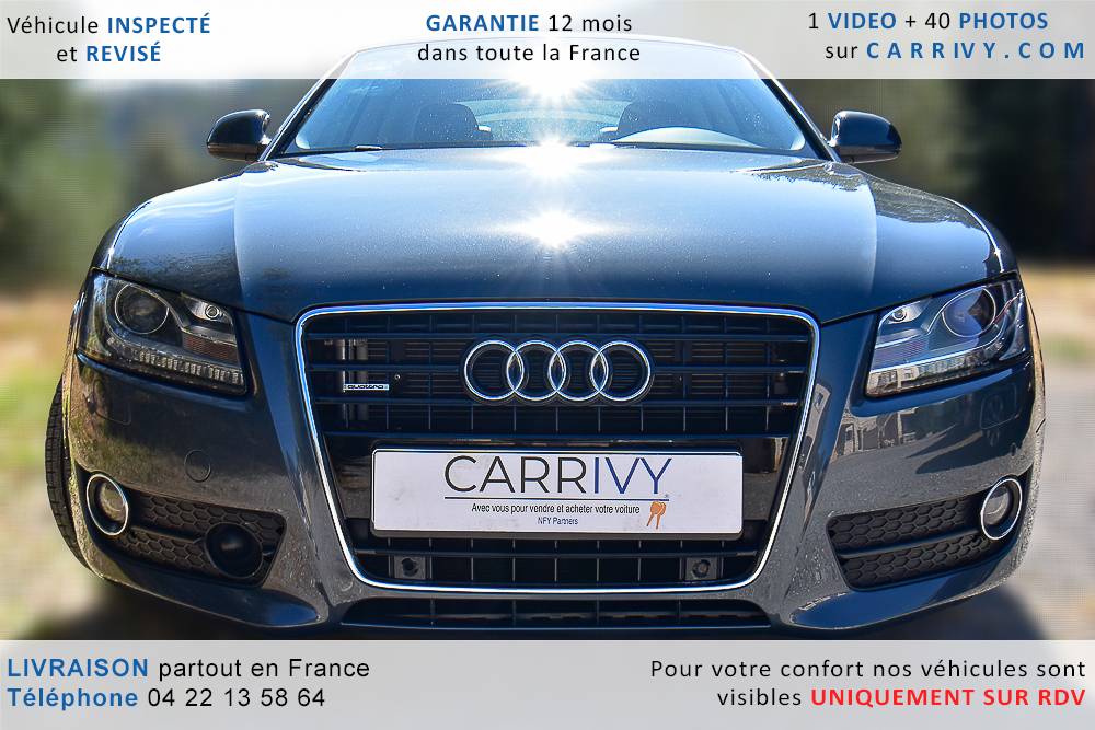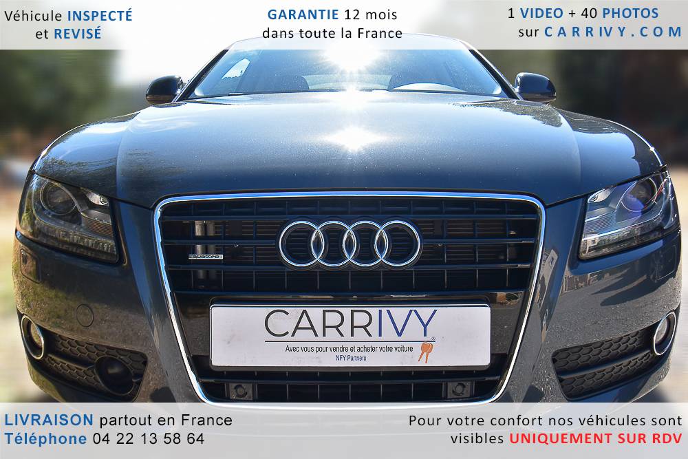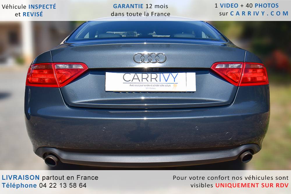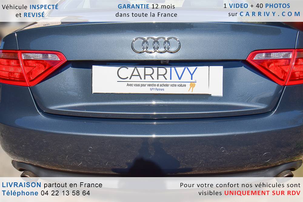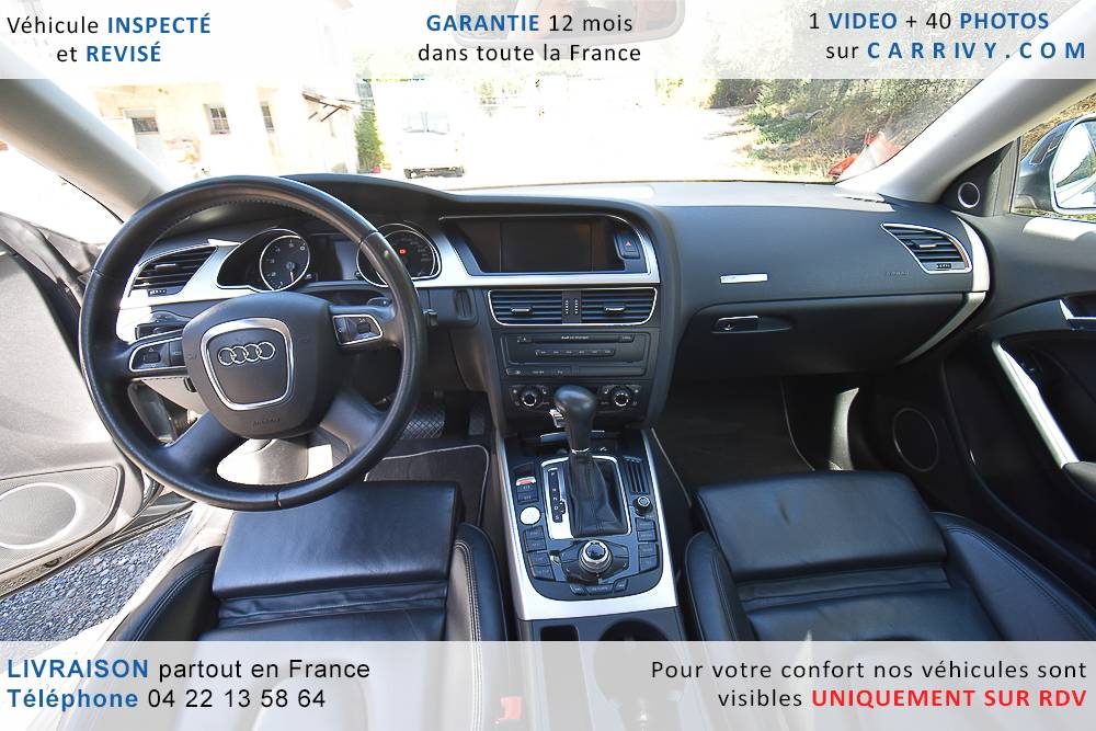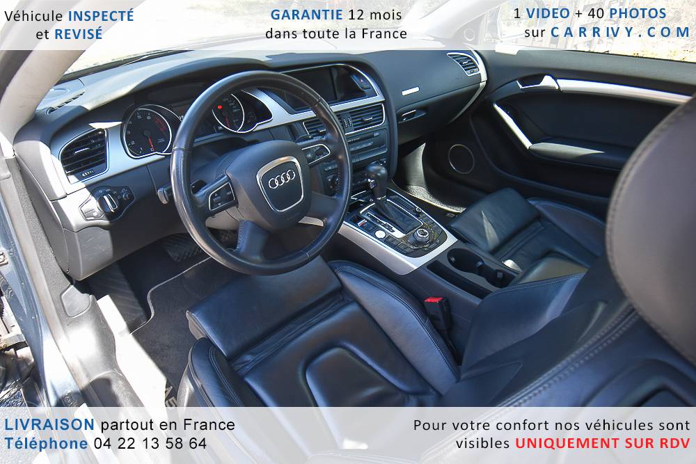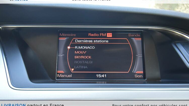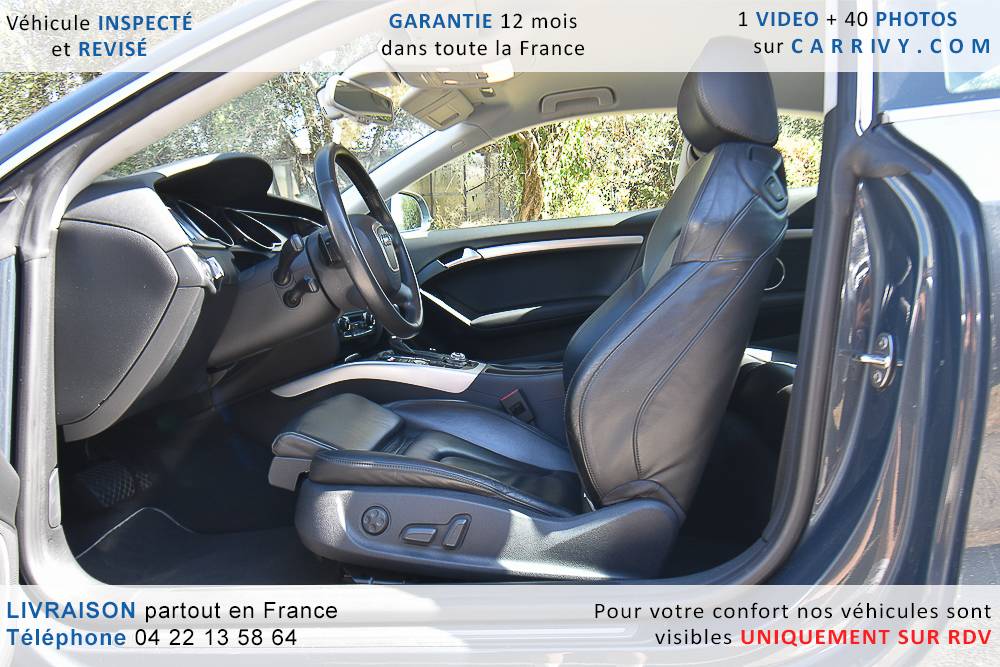 EQUIPEMENTS => Gps tv + carte sd – Kit mains libres bluetooth – Radio cd mp3 + chargeur cd – Capteur de pluie et de luminosité – Régulateur de vitesse – Jantes alu – Phares bi xénon – Radar de recul – Rétroviseurs électriques – Banquette 1/3 2/3 – Clim automatique tri zones – Direction assistée – Ordinateur de bord – Rétroviseur intérieur électrochrome – Sièges avant électriques – Verrouillage centralisé des portes – Vitres avant électriques – Volant réglable en profondeur et hauteur – Sellerie cuir – Abs – Airbags frontaux – Airbags latéraux avant – Airbags rideaux – Antipatinage – Esp – Phares antibrouillard – Démarrage sans clé : 710 € ttc – Régulateur de vitesse et de distance : 1 180 € ttc – Caméra de recul : 960 € ttc – Peinture métal : 890 € ttc – Radar de stationnement av et ar : 430 € ttc – Rétros élec. dégivrants et rabattables : 410 € ttc – Sièges avant chauffants : 380 € ttc – Sellerie cuir & alcantara : 380 € ttc – – Suivi d’entretien audi en intégralité – Première main – Interieur cuir – Sièges chauffants – Détecteur de franchissement – Front assist – Réglage électrique des sièges à mémoire : 1500 – Détecteur d’angle mort – Hifi bang & olufsen : 1500 –